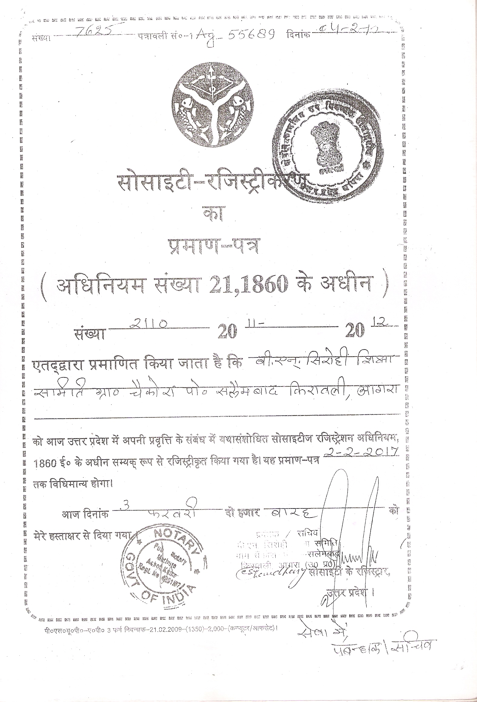 Society Registration Certificate